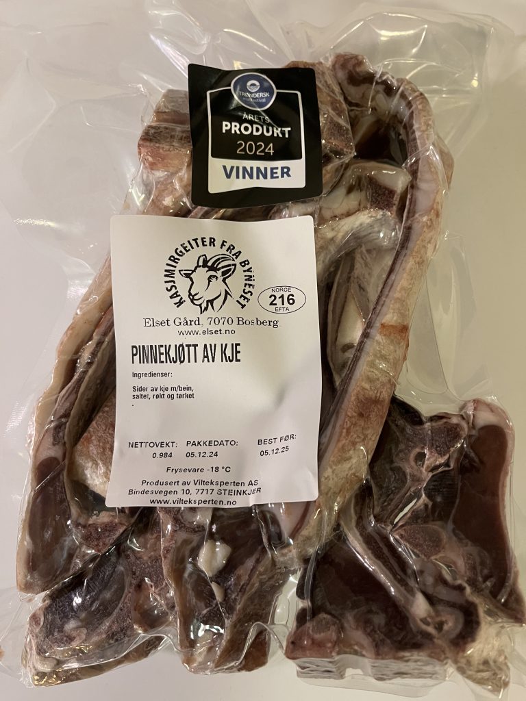 I 2023 og 2024 deltok vi på Trøndersk matfestival i Trondhem, der vårt fenalår av kasjmirgeit ble årets kjøttprodukt i 2023 og pinnekjøtt av kasjmirgeit ble årets kjøttprodukt i 2024.