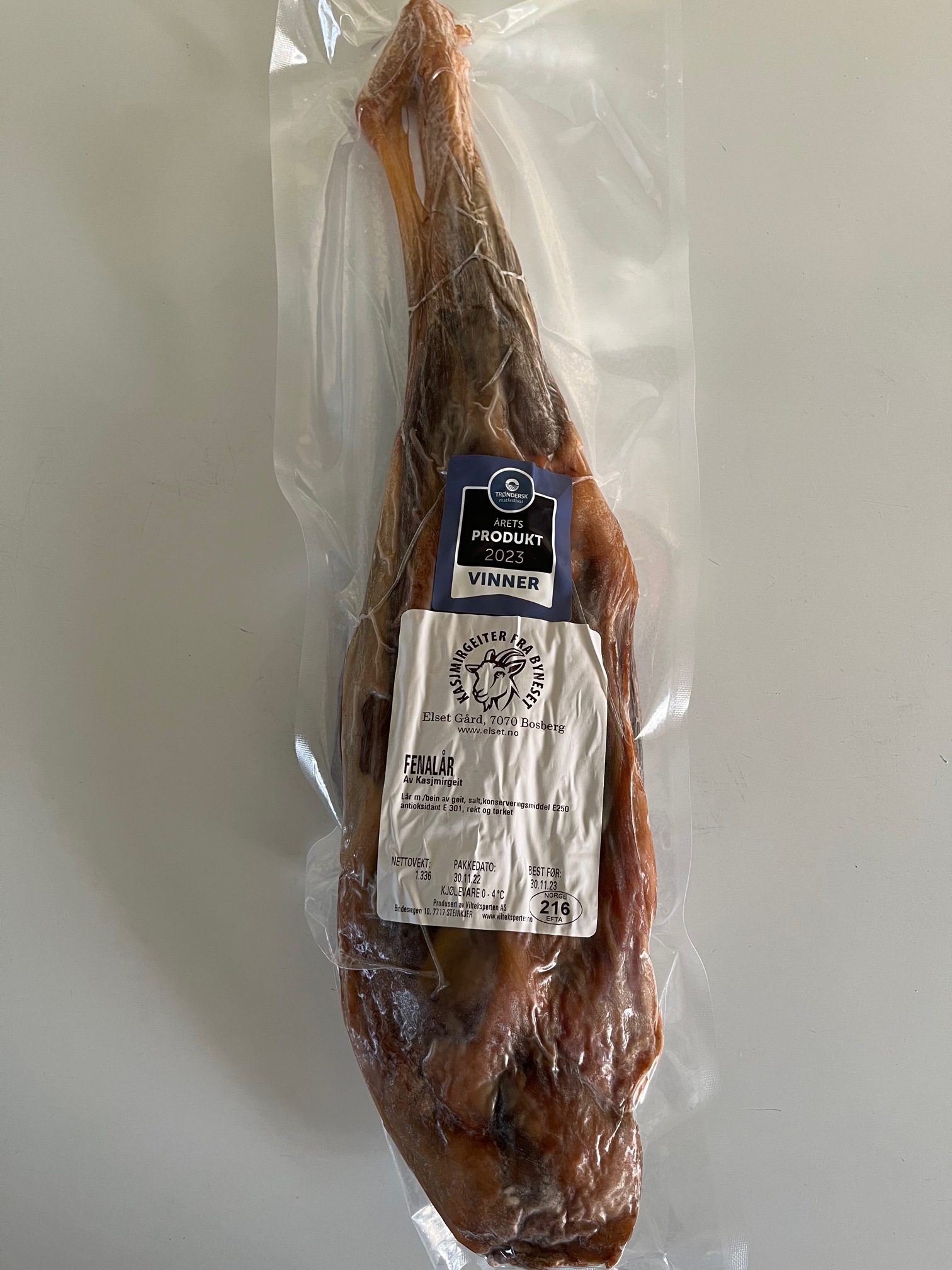 I 2023 og 2024 deltok vi på Trøndersk matfestival i Trondhem, der vårt fenalår av kasjmirgeit ble årets kjøttprodukt i 2023 og pinnekjøtt av kasjmirgeit ble årets kjøttprodukt i 2024.